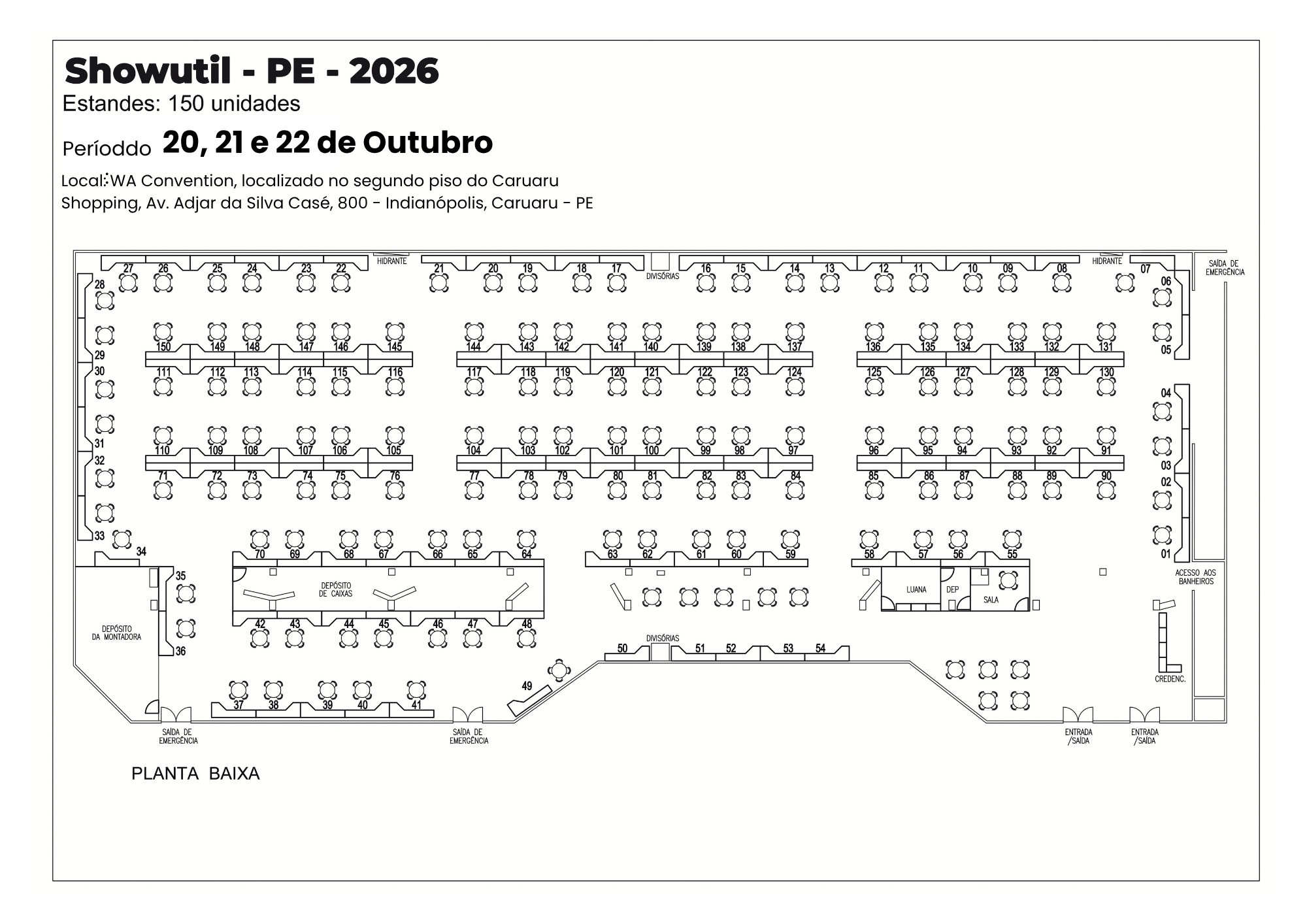 WA Convention, localizado no segundo piso do Caruaru Shopping, Av. Adjar da Silva Casé, 800 – Indianópolis, Caruaru – PE